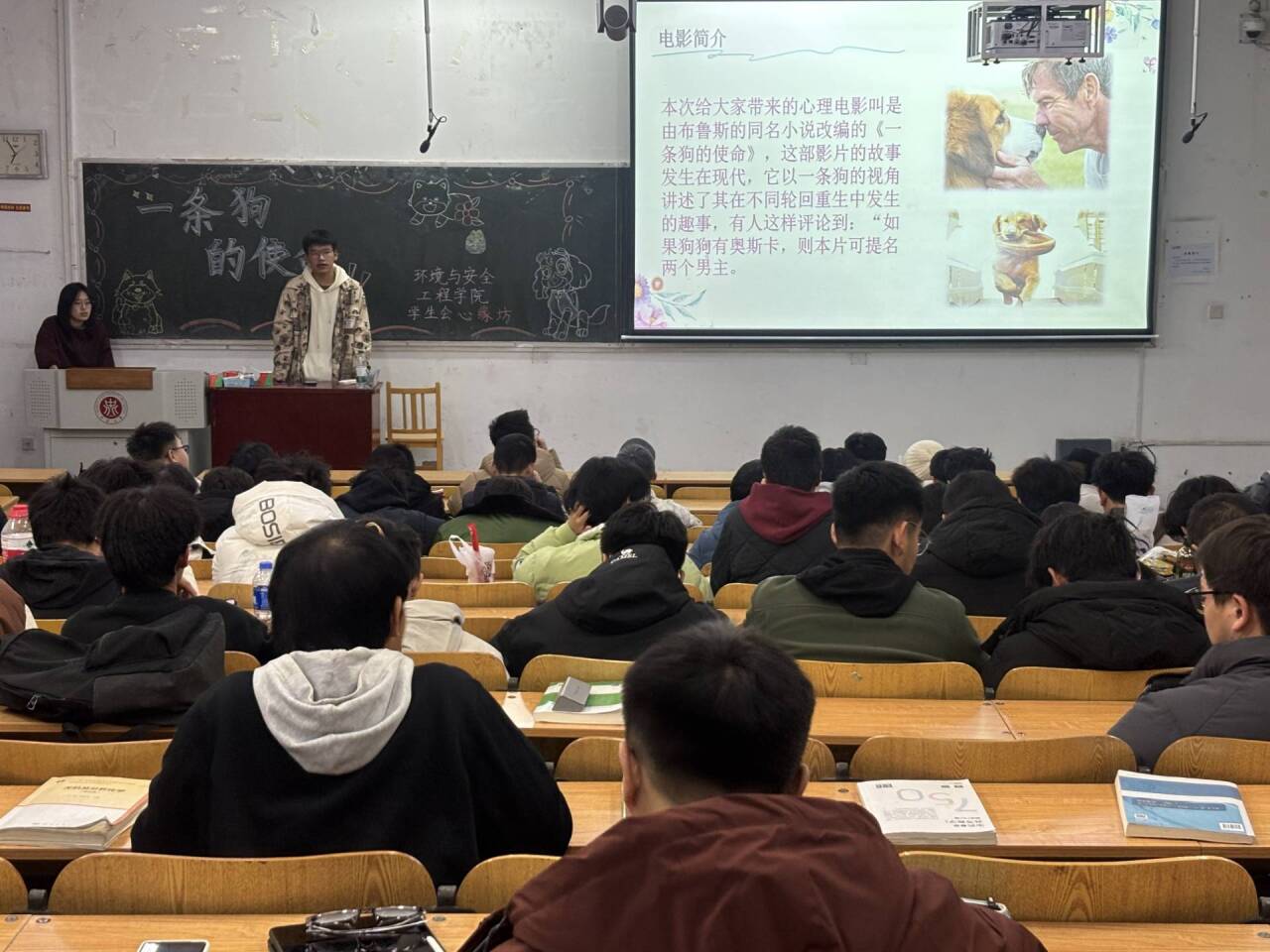 团委学生会心缘坊主持的电影《一条狗的使命》在这里特别放映,吸引了众多学生前来观看。这部电影以其深刻的情感表达和对宠物忠诚的描绘,触动了在场每一位学生的心灵。