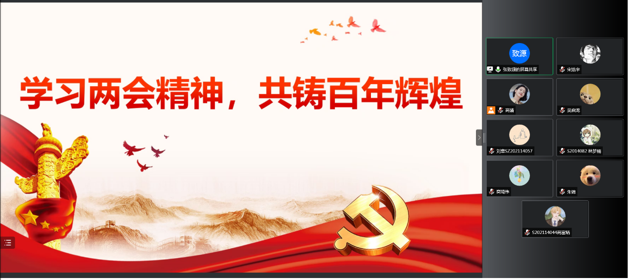 会议伊始,支部组织委员张致源同志就2022年全国两会的主要内容及学习全国两会的重要意义进行了全面深入的总结。随后,与会人员分别发表对学习两会知识的感悟。各位入党积极分子热情高涨,纷纷分享他们的观点。积极分子高富炳同学表示,作为一名新时代的青年,党史的学习对我们显得尤为重要,只有通过学习党艰辛探索的奋斗史,才能体会到如今的幸福生活有多来之不易,“不经一番寒彻骨,哪得梅花扑鼻香”,通过党史学习也更加坚定了积极分子们加入中国共产党的决心。积极分子宋浩宇同学认为,作为新时代研究生,应不断提高思想水平、政治觉悟、道德品质、文化素质,从而为学生做好表率作用,提高全心全意为同学服务的意识。