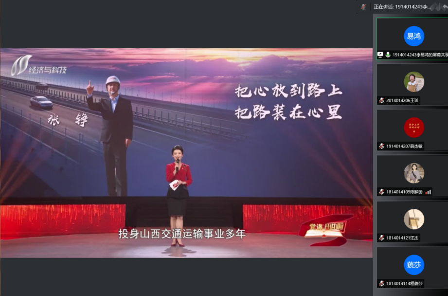为持续推动党知识的学习教育,紧跟党的步伐,筑牢信仰之基,激发奋进力量。环境工程本科生党支部全体党员于2022年5月23日晚7:30举办了“党课开讲啦—张铮同志讲述交通变迁”的活动。