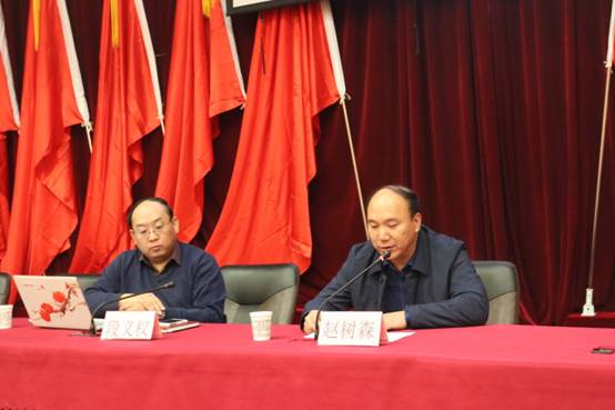 邀请校十九大宣讲团成员段义权教授,以“贯彻落实党的十九大精神,维护和追随核心,新征程路上砥砺前行”为主题,在图书馆五层会议室向全体院领导、科室负责人、教师、学生干部进行宣讲,会议由院党委书记赵树森主持。