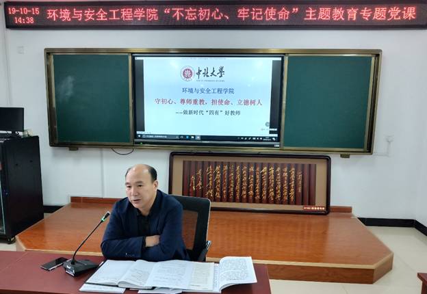 院党委书记赵树森同志在科学楼C座西901以题为“守初心、尊师重教,担使命、立德树人——做新时代“四有”好教师”为学院全体党员讲“不忘初心,牢记使命”主题教育专题党课。