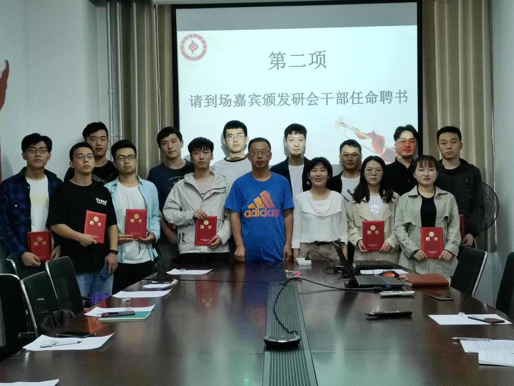 随后,上一届研会主席王宇韬同学发表了换届感言和希冀,希望新一届集体能够团结同学,积极主动地参与到研会的各项工作中来。新一任研会主席史伟伟发表了对研会未来工作的展望与规划,鼓励大家不仅要注重科研能力的培养,还要加强锻炼,丰富课余活动,统筹好各个部门的职能工作,协调各方,加强对有能力干部的选拔和培养。