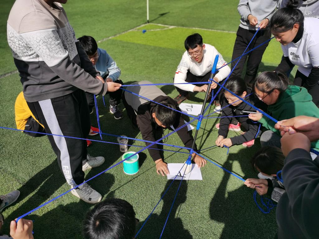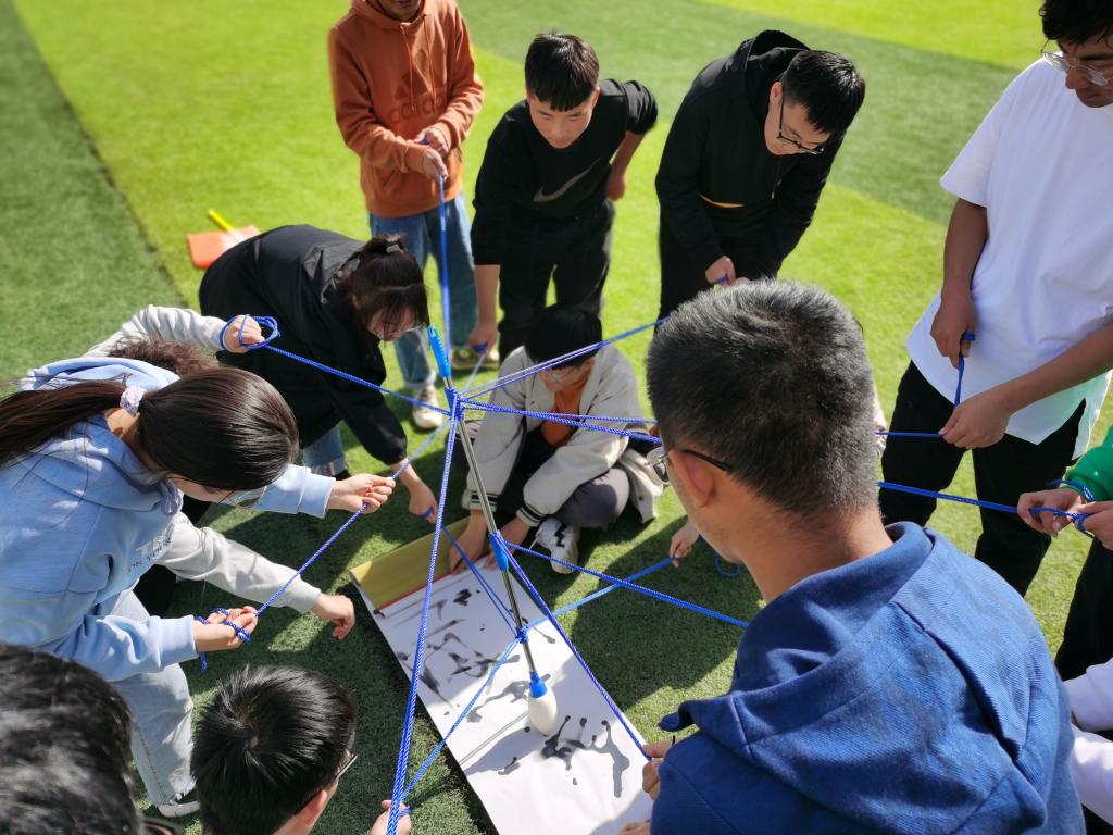 为了提高队伍内的交流合作意识,一场紧张又刺激的“破冰行动”拉开帷幕。在这期间同学们戮力同心,由开始的通过运气与体力来赢得比赛,经过伙伴间的交流与合作,研究出了一套又一套高效又简单的方法。在团建空隙的总结上,经过张铁成老师的启发下,班级同学认识到了沟通、交流、总结经验、团结合作的重要性,只有戮力同心,方得破冰远行。