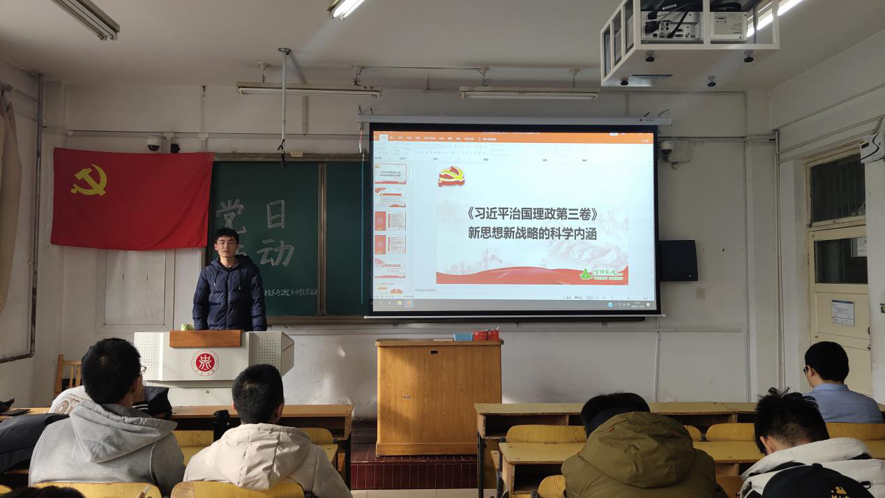 为深入学习《习近平谈治国理政》第三卷,2020年11月28日上午10点,特种能源技术与工程本科生党支部于10305H教室开展了“以学习《习近平谈治国理政》第三卷”为主题的党日活动。