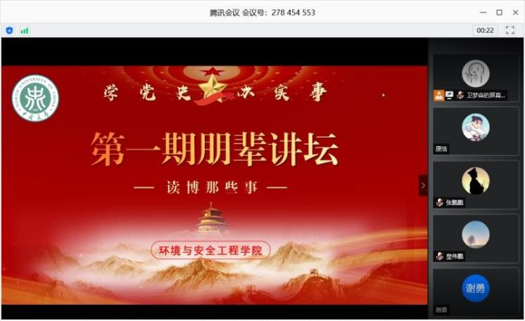 2021年4月12日19:00,第一期朋辈讲堂——“读博那些事儿”正式开讲。讲堂采用线上会议形式,邀请了哈尔滨工业大学的孙淼、北京理工大学的梁家豪、武汉理工大学的衡怡君、西安交通大学的高宏飞以及色情av