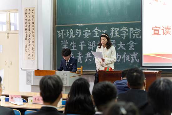 在庄严的国歌声中,本次大会正式拉开帷幕。大会为上一届本科党支部支委和团委学生会学生骨干颁发聘书,并由陈靓老师宣读了新一届学生干部批复及任命文件。到场老师为同学们颁发了荣誉证书及聘书,同学们以热烈的掌声对他们辛勤工作与无私奉献表示感谢。
