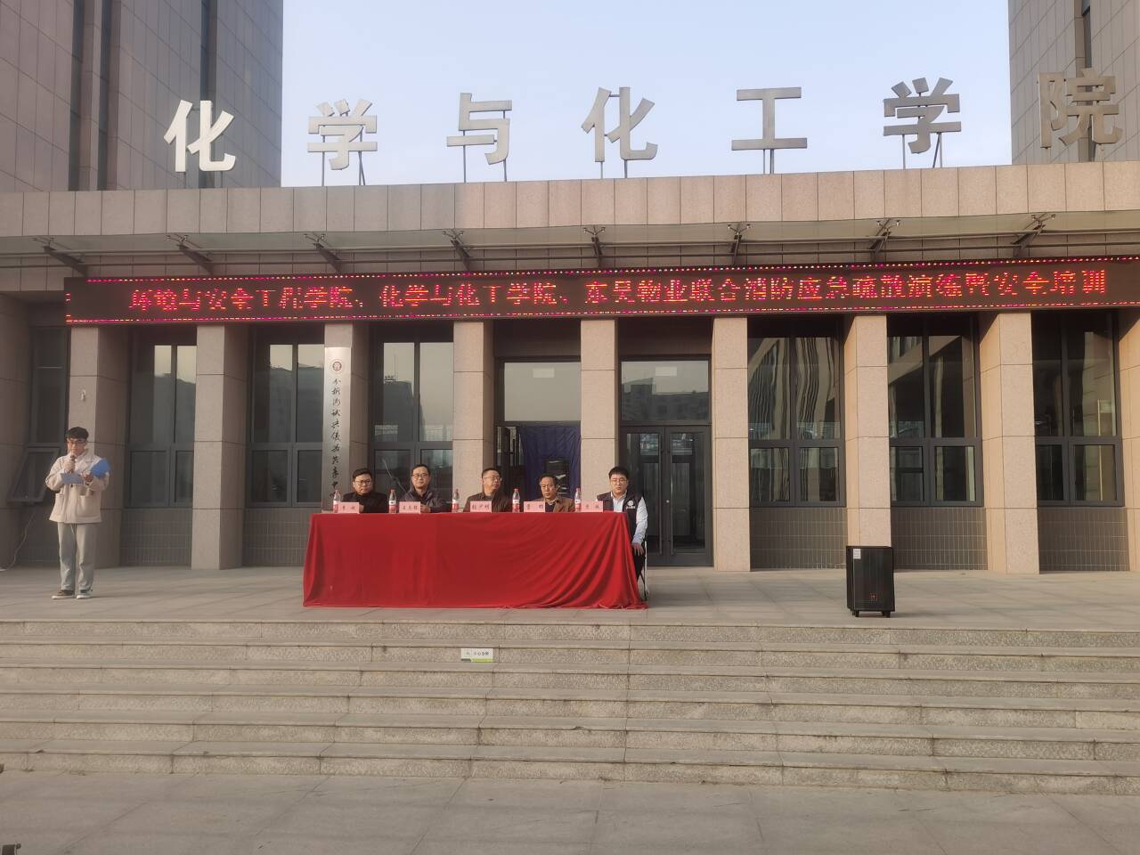 党委副书记张少明、教学副院长曹雄、辅导员张铁成,化学与化工学院王志强、东吴物业经理李斌出席活动,全体2023级学生参加演练。