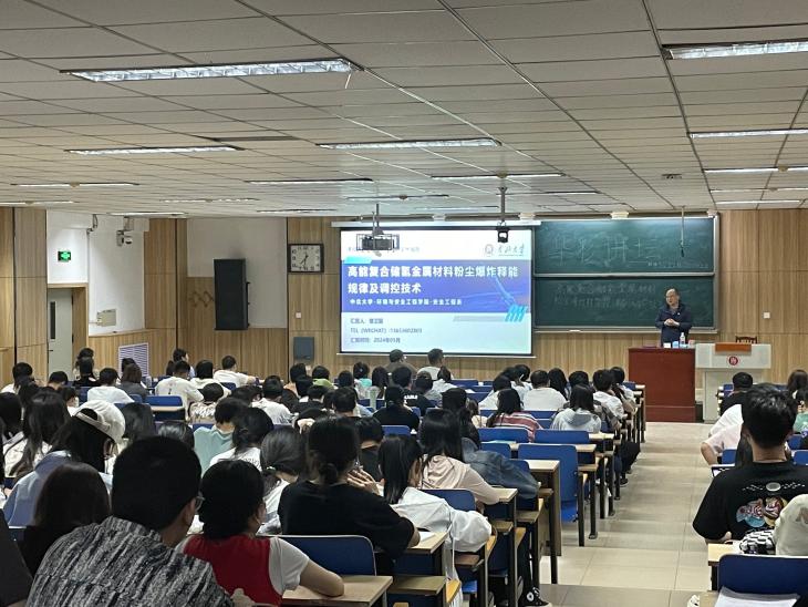 曹卫国教授近年来主持国家自然科学基金3项、获中国安全生产协会安全科技进步一等奖1项、制修订国家标准3项。他就如何提高储氢金属材料高能量释放效率的同时确保其安全稳定的问题为大家进行了分享。他强调,科学研究要与实践需求相结合,高能复合储氢金属材料粉尘爆炸释能规律及调控技术的研究,对含能材料的升级换代具有指导意义。讲座中,他重点介绍了实验设备及方法,强调了解各种设备标准的重要性。他告诫同学们,科学研究承载着社会责任与使命,希望同学们专心学业,潜心研究,为学校高质量发展贡献自己的一份力量。最后,通过解读研究成果,引导同学们更加深入地思考爆炸能量释放过程背后的基础科研问题。