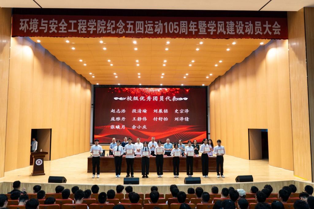 “五四”表彰暨学风建设动员大会在科艺苑隆重举行。院党委书记王振荣、院党委副书记张少明、院科研与学科建设副院长张树海、院教学副院长曹雄、土木工程系主任韩云山、环境工程系主任卢静、安全工程系副主任曹卫国、院学生科科长陈靓及全体辅导员、班主任、获奖集体和个人代表600余人参加了大会。大会由学院团委书记李佳丽主持。
