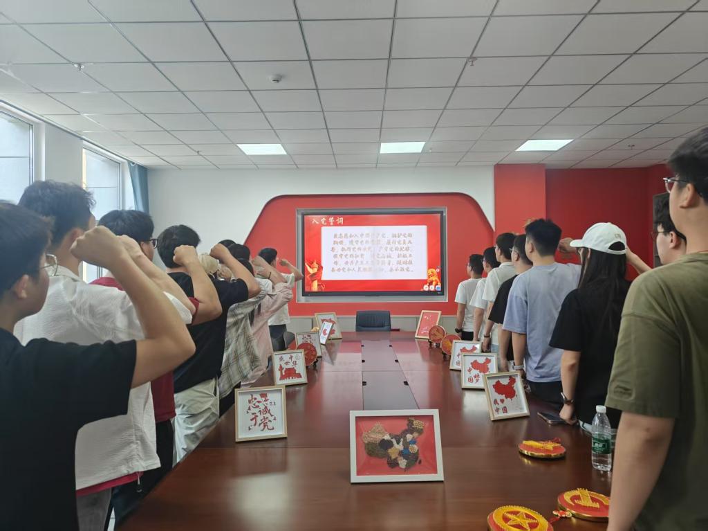 会议开始每组同学介绍自己所拍摄的历史场景的内容和意义,大家用镜头还原巴黎和会、五四运动、中共一大等历史场景,把教科书上的文字转化为有画面、有情绪的视听语言,让党史事件从文字描述变成可感知的真实场景,因此对党史有了更深层次的了解。接着由郭欣荣同志带领全体党员重温入党誓词,加强党员理想信念,宣誓时读到“为共产主义奋斗终身”,是对党的理想信念的公开承诺。
