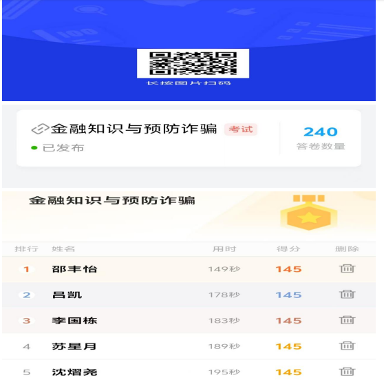 资助部在指导教师的悉心引领下,精心策划并成功举办了金融知识竞赛活动。本次金融知识竞赛240人参加,评选3个优秀班级,获奖班级为:24140441班、24140343班、24140342班。此次竞赛活动不仅让同学们深入理解了金融信用的核心要义,更在潜移默化中培育了理性借贷、诚信履约的价值观,为防范金融诈骗筑起坚实的思想防线。