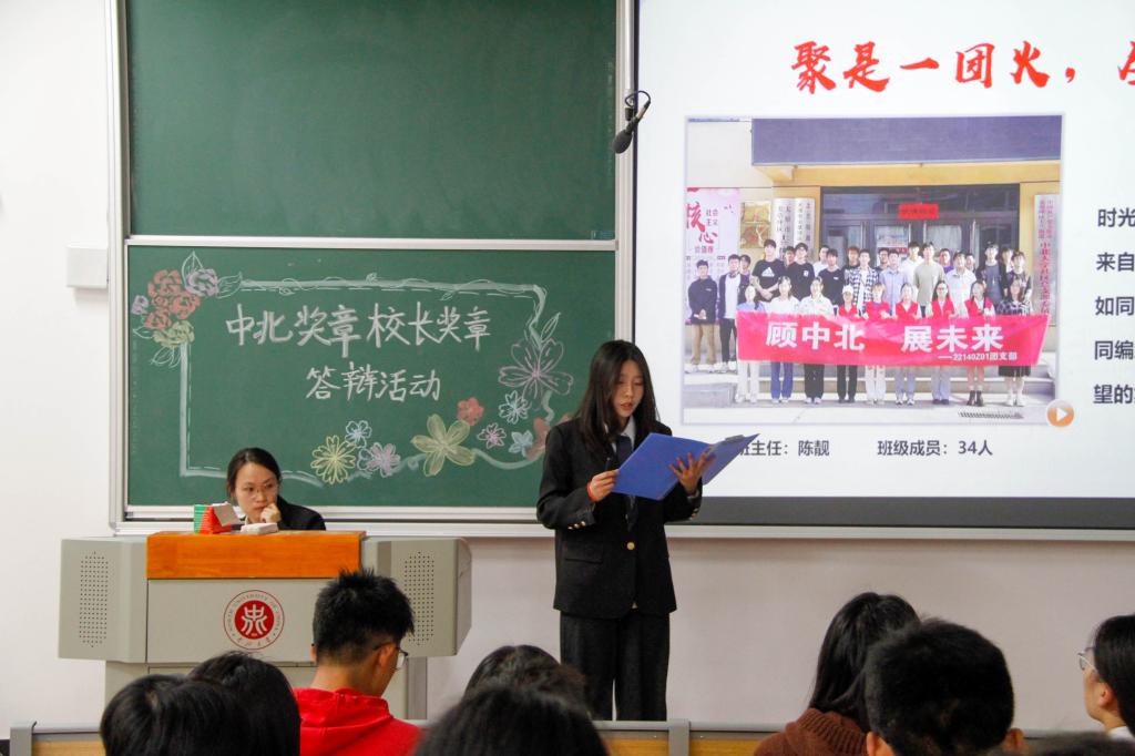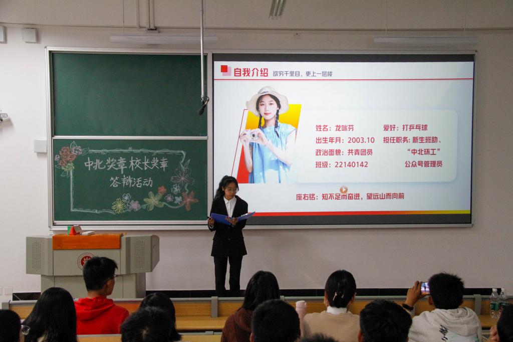 中北奖章和校长奖章答辩活动在17101H隆重举行。参加答辩的有学生科老师,大一各班级。